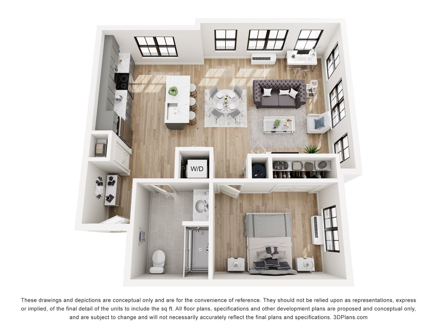 Floor plans and 3D Tours are conceptual only and are for the convenience of reference. They should not be relied upon as representations, express or implied, of the final detail of the units to include the sq. ft.